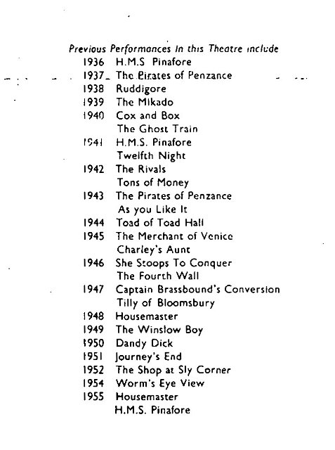 Theatre Performances 1936 - 1956