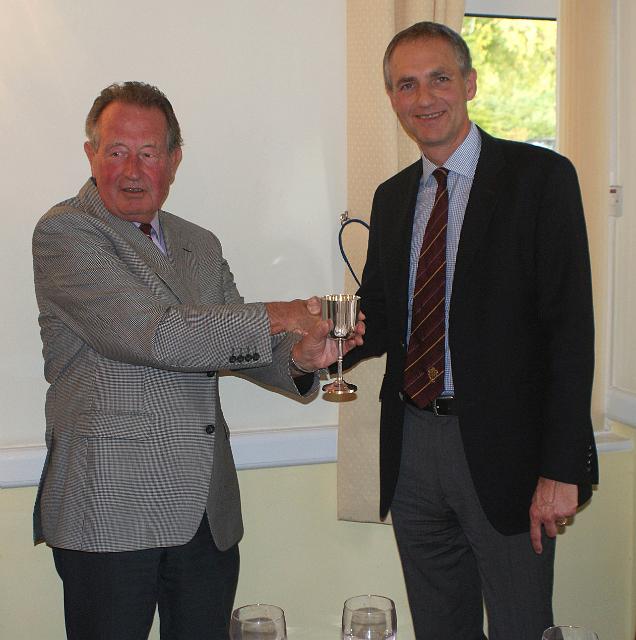 Club Captain David Tarbet presents the Trophy to Lotus Eater Captain Ron Bouttle