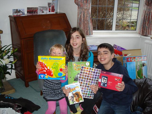 Hannah, Zoe and Dom show their presents