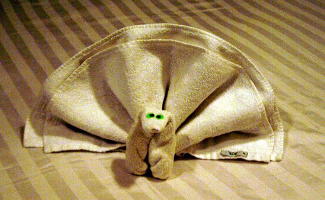 In Cabin 6067 - an imaginative arrangement by the cabin staff - a different animal each night